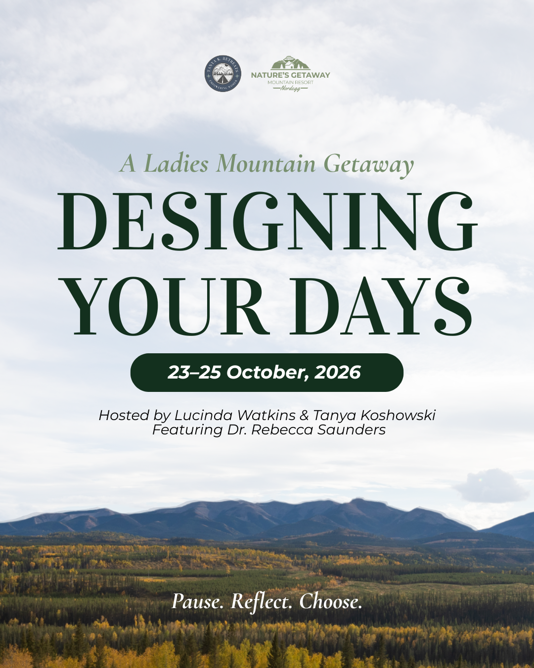 DETAILS 🌿 Designing Your Days: A Ladies Mountain Getaway October 23–25, 2026 | Nature’s Getaway Mountain Resort, Nordegg, AB Hosted by Lucinda Watkins & Tanya Koshowski Featuring Dr. Rebecca Saunders The […]
